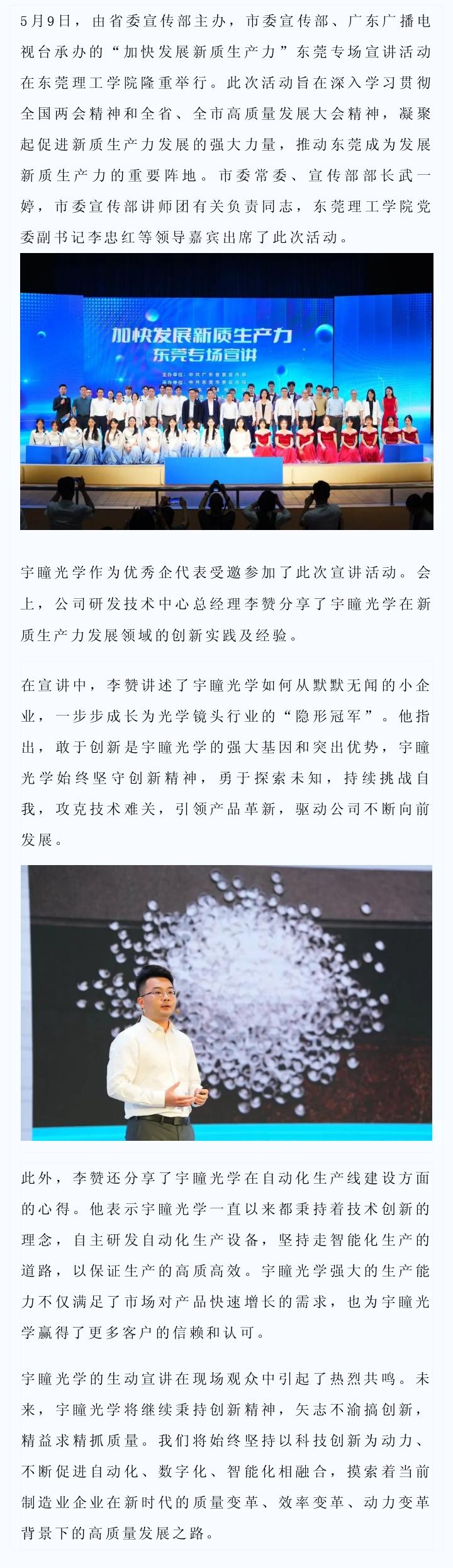 “加快發(fā)展新質(zhì)生產(chǎn)力”東莞專(zhuān)場(chǎng)宣講——宇瞳光學(xué)篇